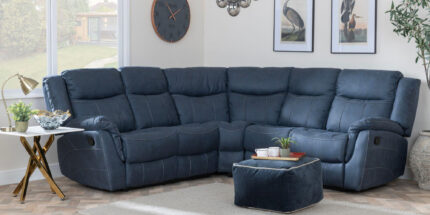 Rowe Denim Blue Leather Look Fabric Recliner Corner Sofa