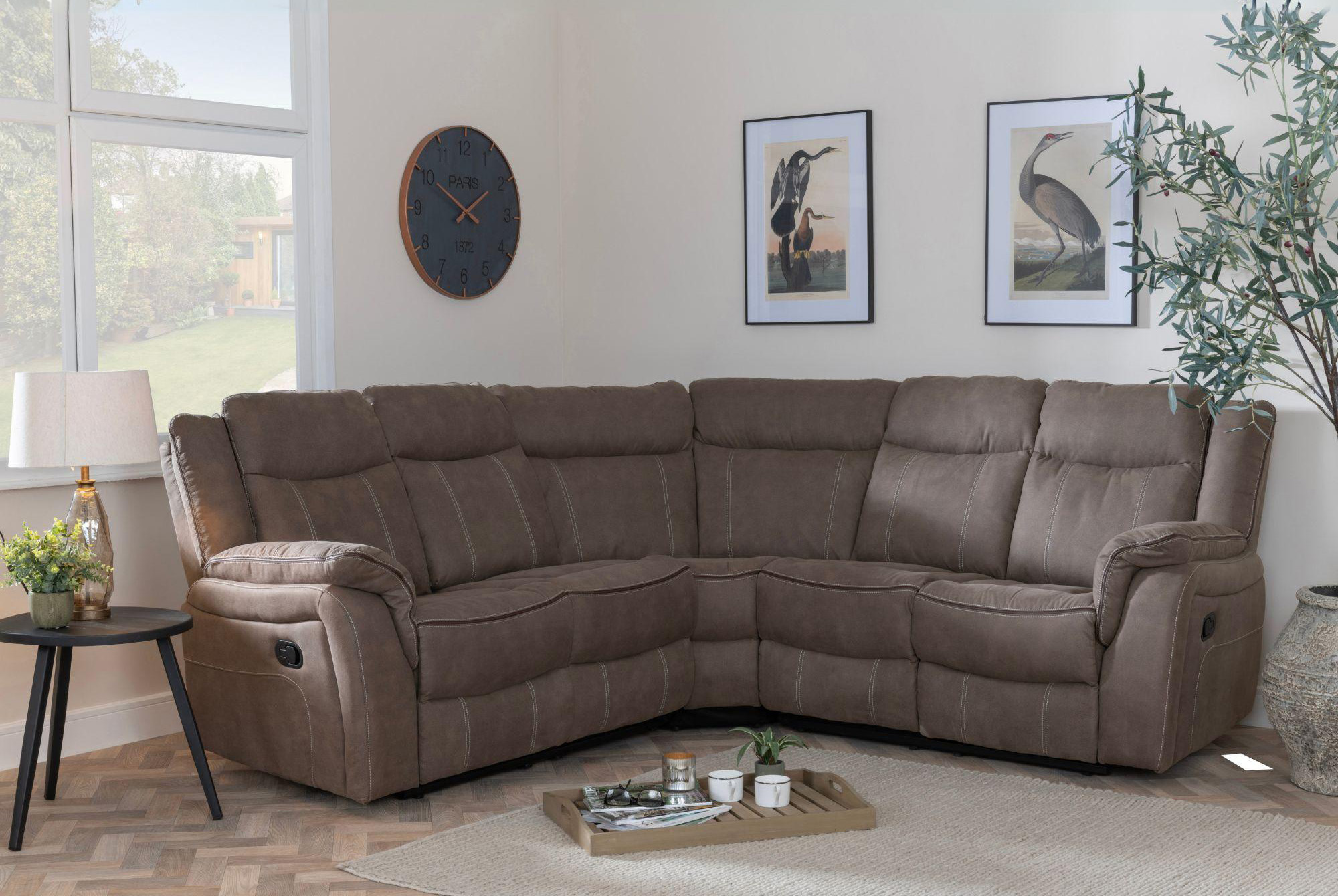Home Furniture Sofas Recliners Manual Recliners Matera Brown Leather Look Fabric Recliner Corner Sofa