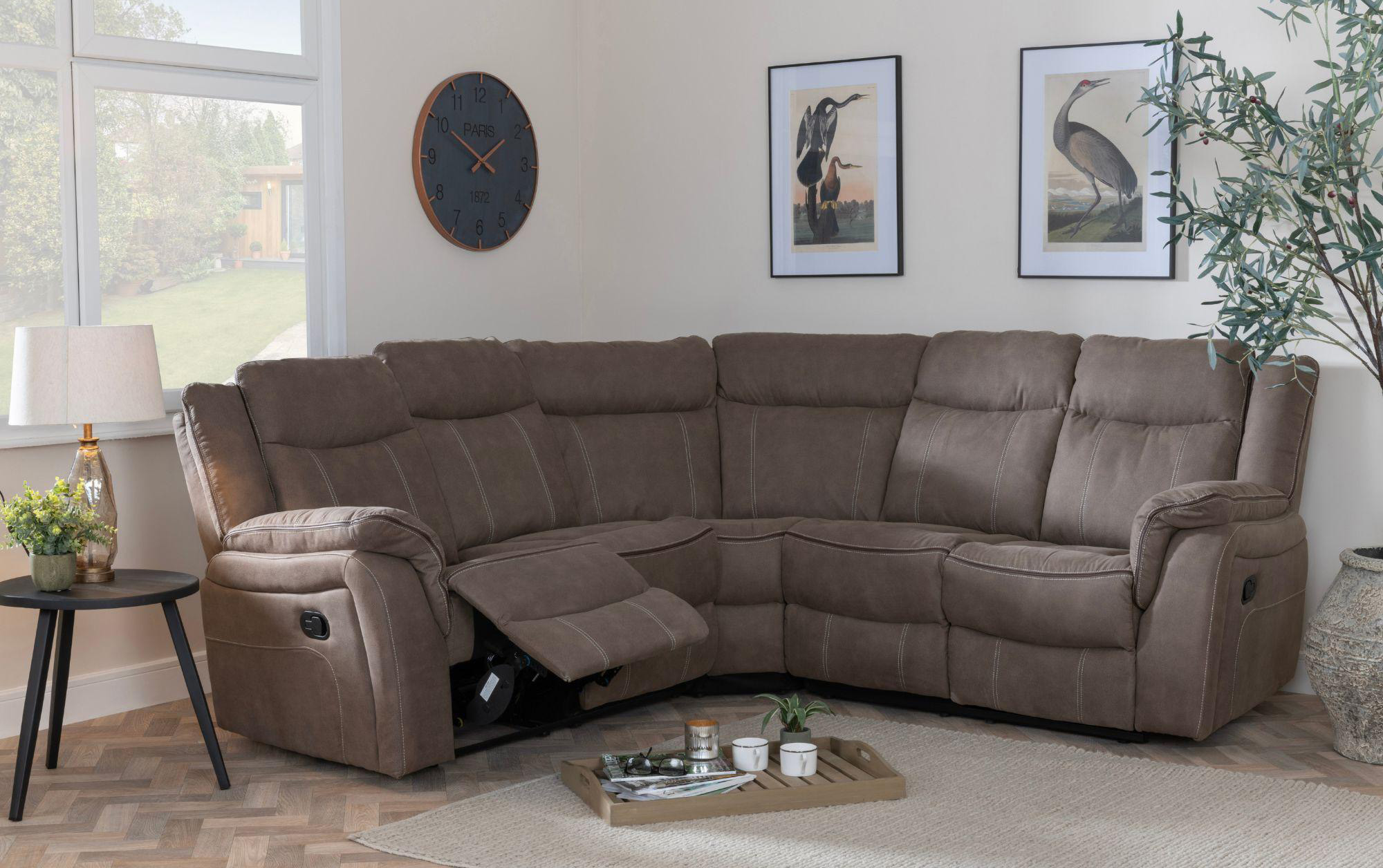 Matera Brown Leather Look Fabric Recliner Corner Sofa