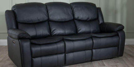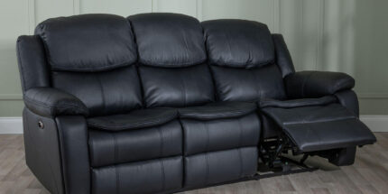 Onyx Black Leather 3 Seater Recliner Sofa