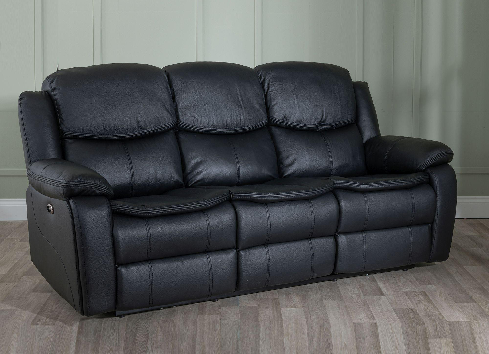 Home Furniture Sofas Recliners Electric Recliners Onyx Black Leather 3 Seater Recliner Sofa