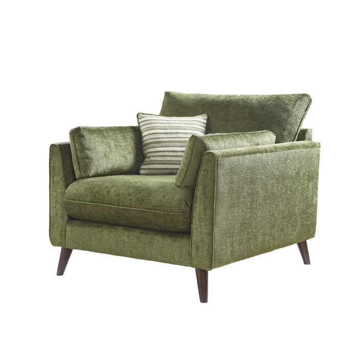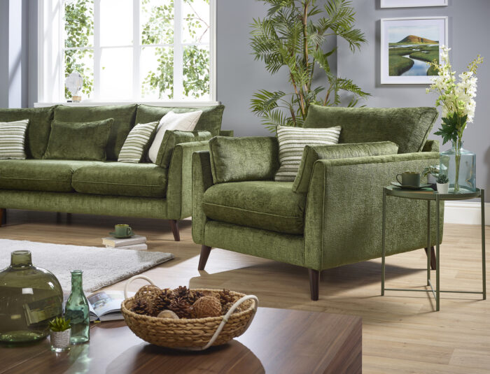 A classic design with a contemporary twist which would live happily in a traditional or modern living space. An extremely comfortable sit with high back cushions and arm bolster wraps you in luxurious support, the striking accent cushion offers both style and flare